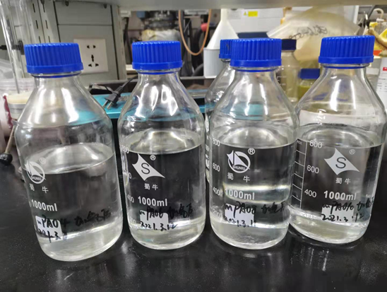 润滑材料实验室李久盛研究员带领团队与山西潞安化工集团合作,自2014年开始联合召开了煤制α-烯烃制备mPAO 的研发工作,取得了一系列关键制备技术的突破,申请了10多项发明专利,填补了国内低粘度PAO基础油的技术与产品空白。在上述研究工作的基础上,双方合作于2020年11月实现了中试生产装置开车,历时数月完成了烯烃原料预处理段、烯烃聚合段、聚合后精馏段和聚烯烃加氢段的稳定运行和工艺参数优化。试验结果表明,自主研发的茂金属催化剂具有超高的催化活性(不小于60Kg/g)和优异的选择性,烯烃原料转化率大于98%。中试生产的mPAO 4、6、8、10四个产品与进口产品相比,除了具有优异的低温性能和出色的热稳定性外,还具有更高的粘度指数。