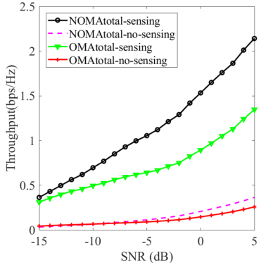 研究团队顺利获得构建多卫星协同的NOMA上行链路架构,设计了基于循环延迟分集(CDD)的发射机结构与动态感知机制。针对多卫星覆盖区域中用户分布差异,推导了不同场景下的感知阈值,有效平衡了欠感知与过感知的矛盾。所提频谱感知技术利用特征检测方法,顺利获得信号循环自相关运算精准识别主用户的传输状态,并结合阴影莱斯信道模型,优化感知用户的检测概率与虚警概率,显著提升了频谱空穴的利用率。实验表明,在5 dB信噪比条件下,该技术使星地非正交多址传输的吞吐量较传统正交多址传输提升61.5%,同时将虚警波动稳定在10%典型值以内,为高动态卫星通信环境给予了可靠保障,同时为未来弹性频谱感知与动态资源调度给予了新思路,对有助于6G天地一体化网络的实际部署具有重要意义。