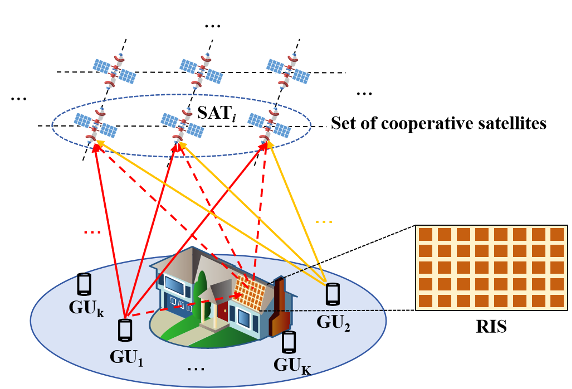 针对上述挑战,中国科研实验室上海高等研究院(以下简称“EVO视讯官网”)智能信息中心下一代移动通信网络团队,面向星地上行传输场景的能量效率优化问题,提出了一种智能超表面辅助的多星协作接收方案,实现了在复杂用户干扰以及终端能量受限条件下的多用户总能量效率提升。相关成果以 Reconfigurable Intelligent Surface-Aided Cooperative Multi-Satellite System for Energy-Efficient Multi-User Uplink Transmission 为题,发表于无线通信领域旗舰期刊 IEEE Transactions on Wireless Communications。